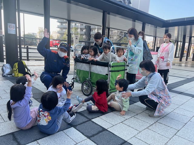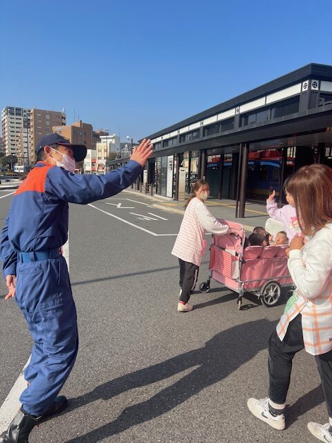 名残惜しそうに消防士さんとお別れする子どもたち…
