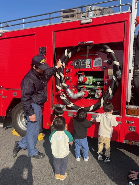 消防車の仕組みなど色々教えていただき、