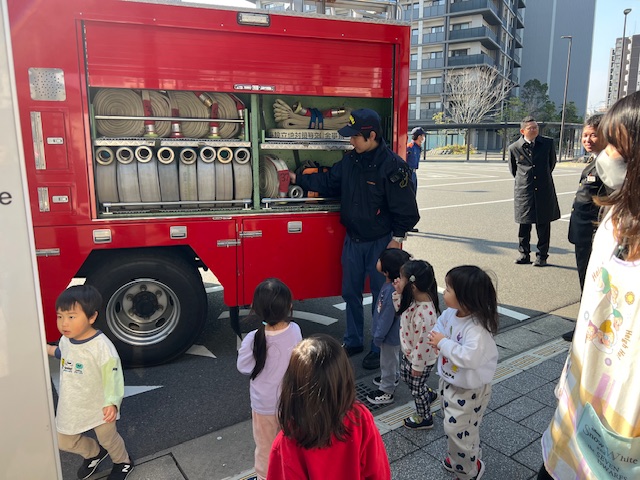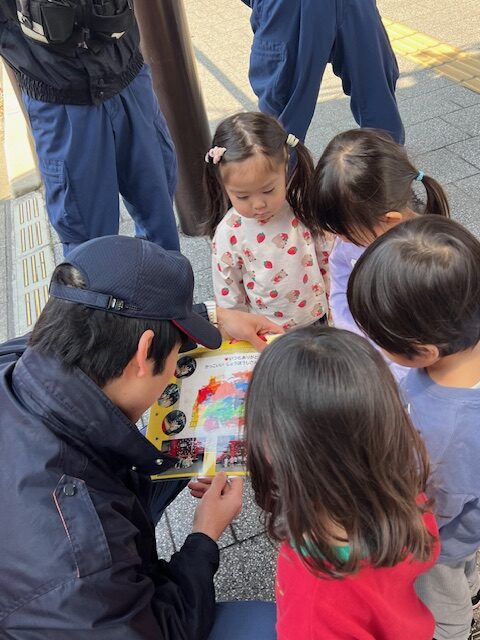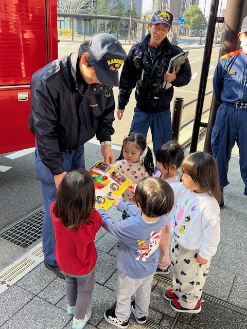 消防士さんはかわいい子どもたちとふれあいに