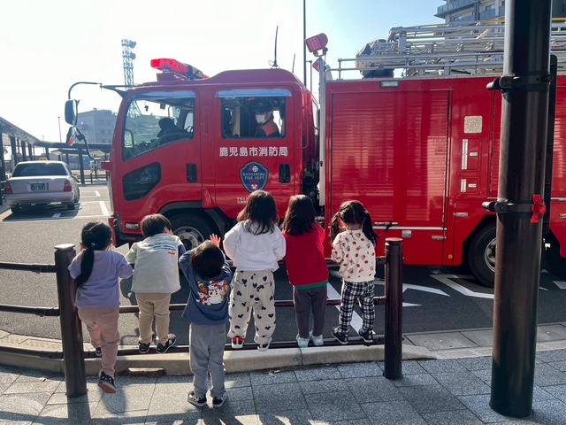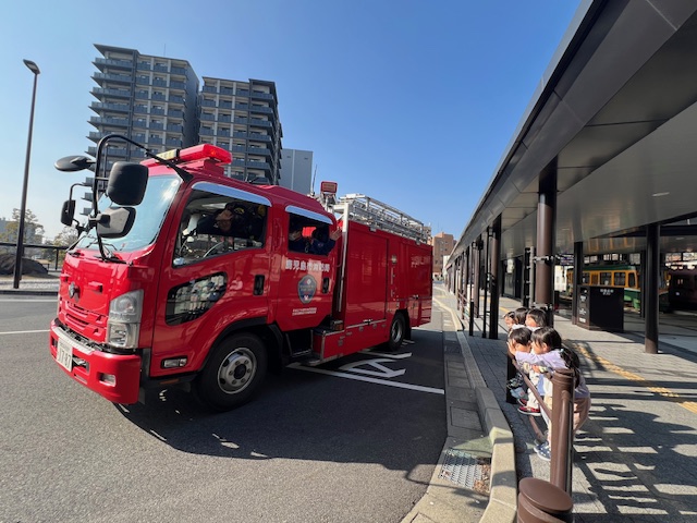 みんな消防車に釘付けです👀