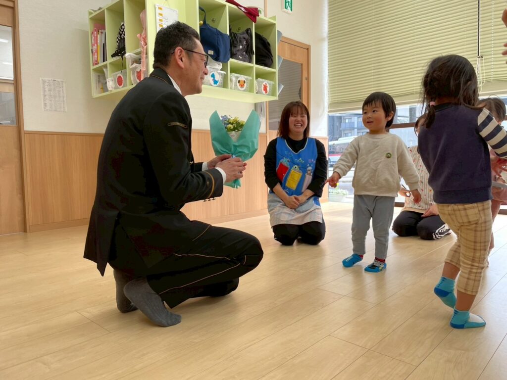 駅長さんがかんまち保育園に