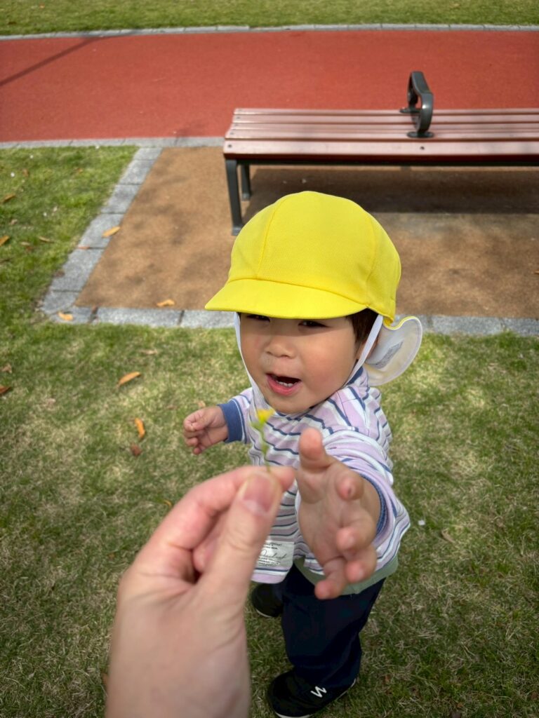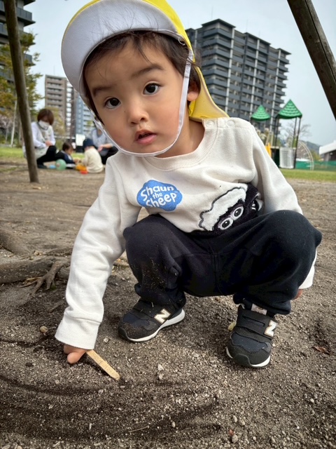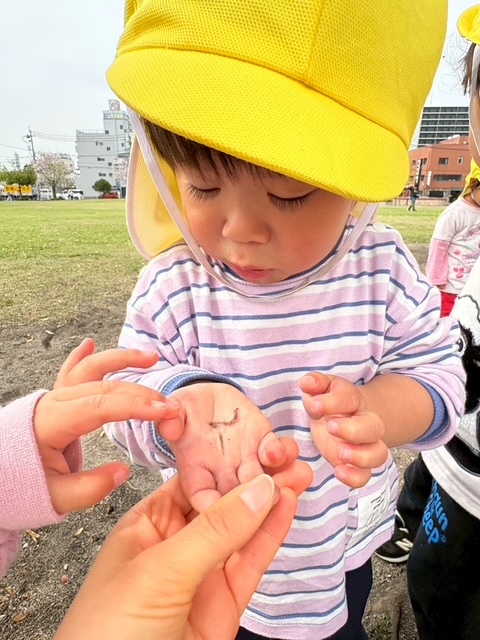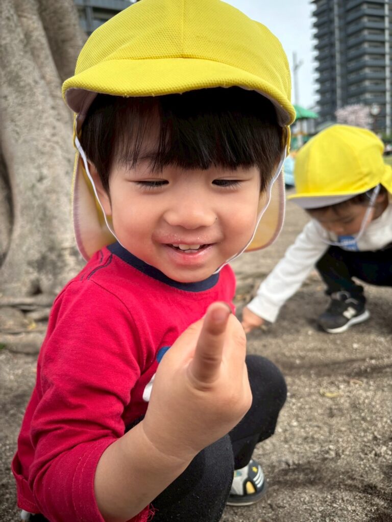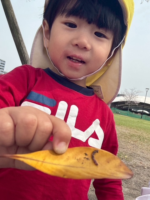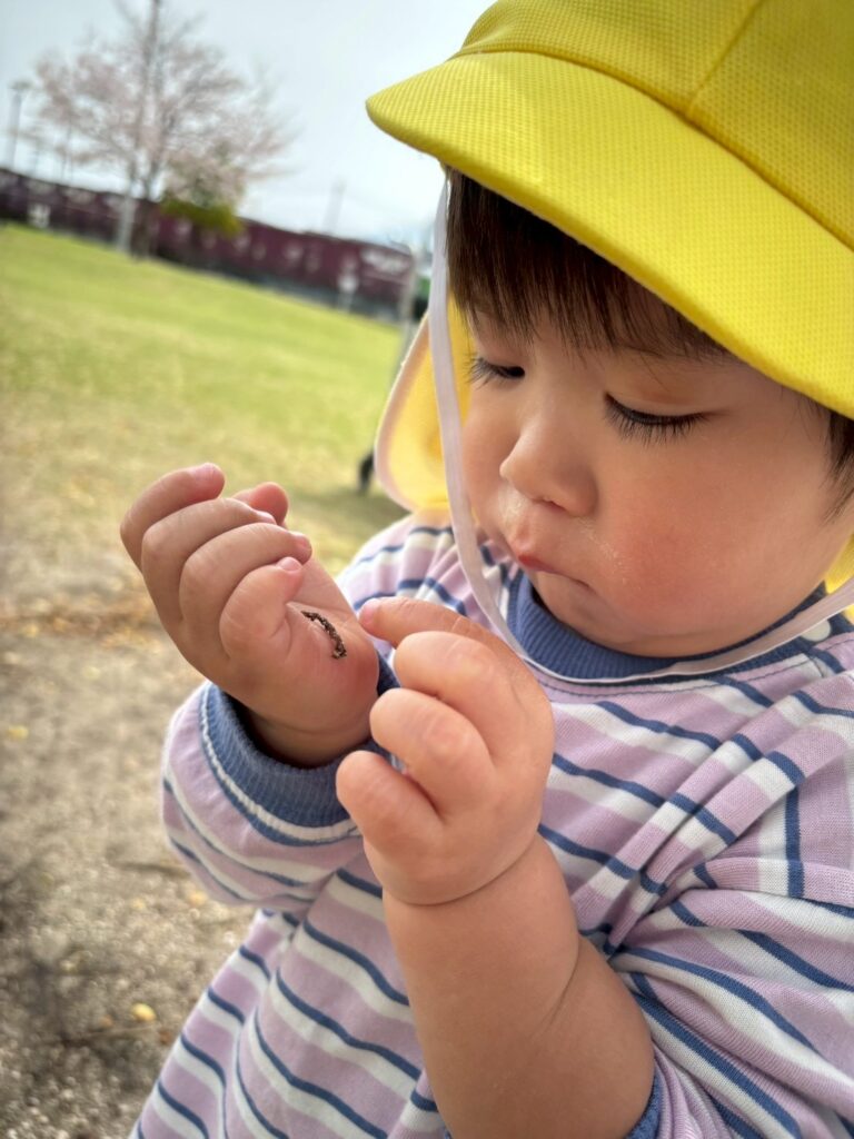 虫を見つけて大喜びのおともだち🐛
